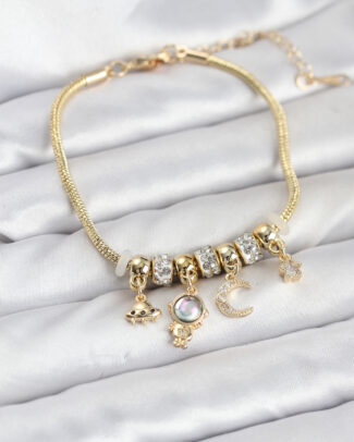 Pirinç Gold Renk Uzay Tema Charmlı Kadın Bileklik