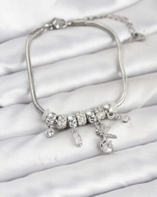 Pirinç Gümüş Renk Tinkerbell Charmlı Kadın Bileklik