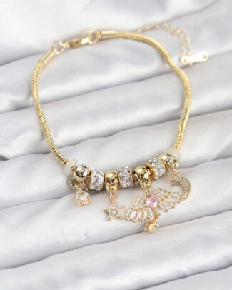 Pirinç Gold Renk Kanatlı Charmlı Kadın Bileklik