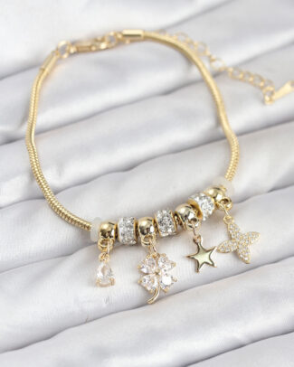 Gold Renk Pirinç Yonca Charmlı Kadın Bileklik