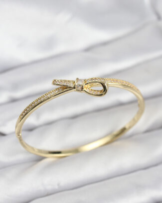 Pirinç Gold Renk Zirkon Taşlı Fiyonk Model Kadın Kelepçe Bileklik
