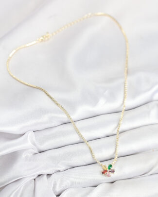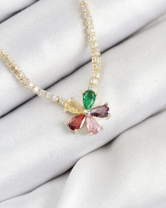 Pirinç Zirkon Taşlı Su Yolu Asorti Çiçek Model Gold Renk Kadın Kolye