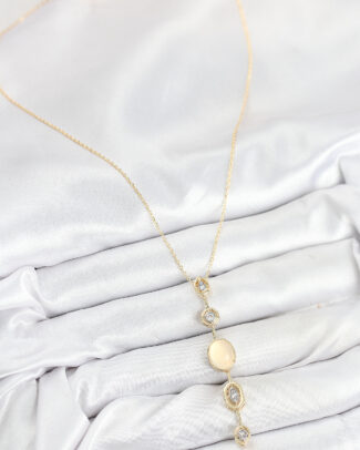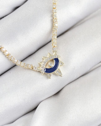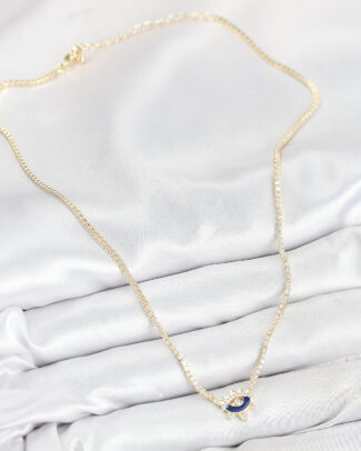 Pirinç Zirkon Taşlı Su Yolu Göz Model Gold Renk Kadın Kolye