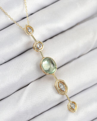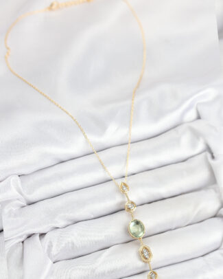 Pirinç Zincir Yeşil Gold Renk Zirkon Taşlı Y Kolye