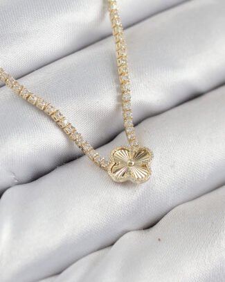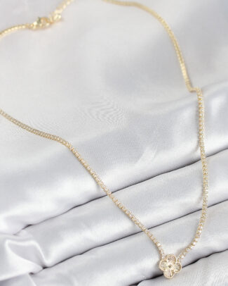 Pirinç Zirkon Taşlı Yonca Model Gold Renk Kadın Kolye