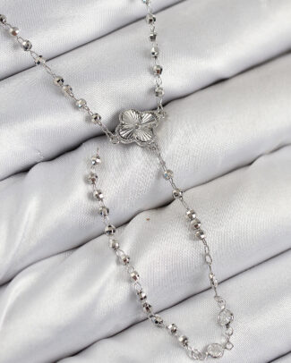 Pirinç Zirkon Taşlı Yonca Model Gümüş Renk Kadın Y Kolye