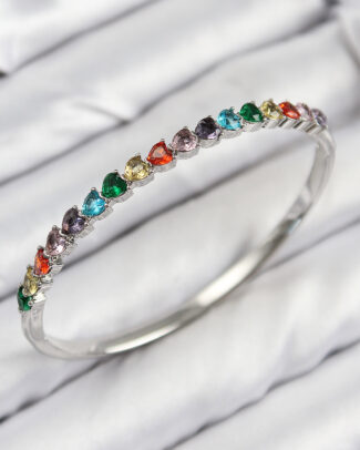 Pirinç Renkli Zirkon Taşlı Kalp Model Gümüş Renk Kadın Kelepçe