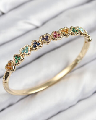 Pirinç Renkli Zirkon Taşlı Sıralı Kalp Model Gold Renk Kadın Kelepçe