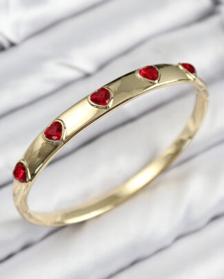 Pirinç Zirkon Taşlı Kırmızı Kalp Model Gold Renk Kadın Kelepçe