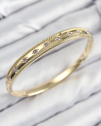 Pirinç Zirkon Taşlı Pembe Kalp Model Gold Renk Kadın Bileklik