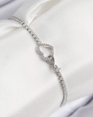 Pirinç Zirkon Taşlı Sonsuzluk Kalp Model Gümüş Renk Kadın Bileklik
