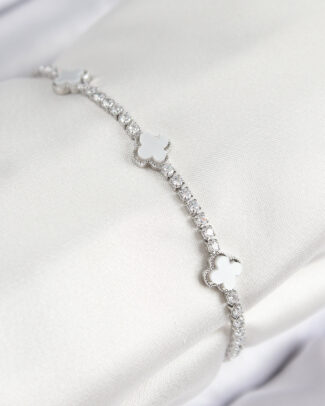 Pirinç Zirkon Taşlı Yonca Model Gümüş Renk Kadın Bileklik