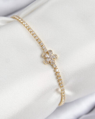 Pirinç Zirkon Taşlı Çiçek Model Gold Renk Kadın Bileklik