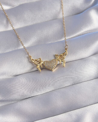 316L Çelik Zincir Altın Renk Mineli Kelebek Figür Zirkon Taşlı Kalp Kolye