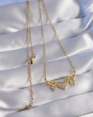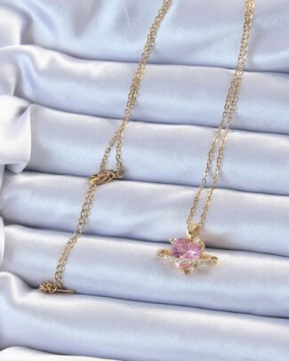 316L Çelik Zincir Gold Renk Zirkon Taşlı Kalp Model Kelebek Detay Kolye
