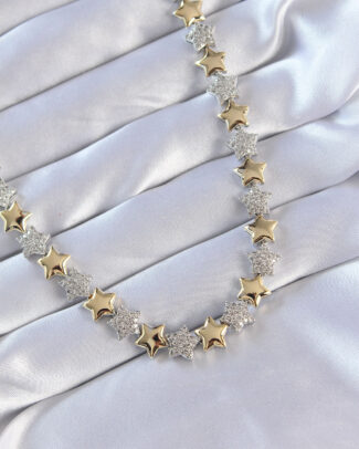 Vip Seri Pirinç Çift Renk Zirkon Taşlı Yıldız Tasarımlı Kolye