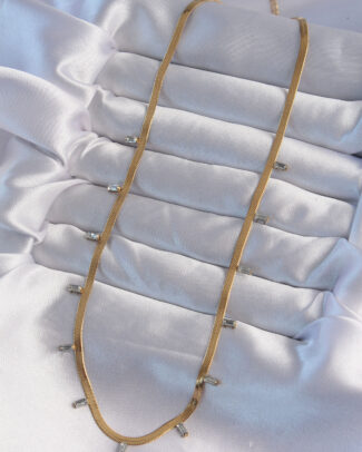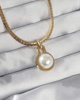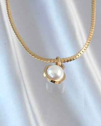 316L Çelik Gold Renk Yassı Zincir İnci Taşlı Kolye