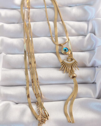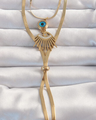 316L Çelik Gold Renk Zirkon Taşlı Göz Detay Nazarlı Uzun Asansör Model Kolye