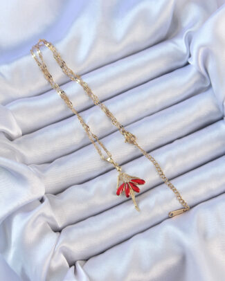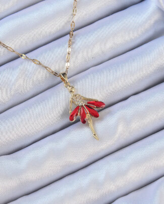 316L Çelik Zincir Altın Renk Kırmızı Etekli Zirkon Taşlı Balerin Kolye