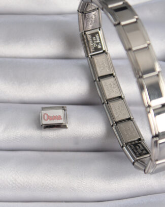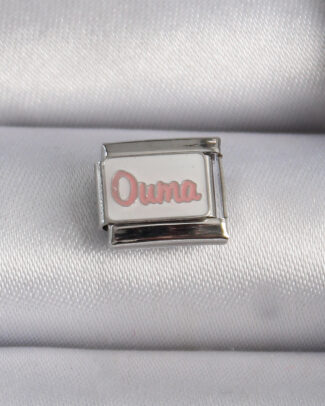316L Çelik Gümüş Renk Beyaz Pembe Ouma İşlemeli Nomination Charm