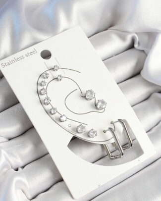 316L Çelik Halka Figürlü Ve Zirkon Taşlı Gümüş Renk 7’li Çift Kadın Küpe Set