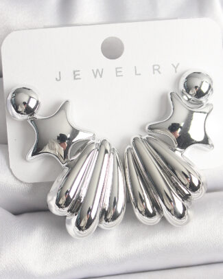 Gümüş Renk Yıldız Deniz Kabuğu Model CCB Plastik Kadın Küpe Seti
