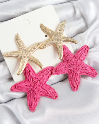 Pirinç Sallantılı Pembe Deniz Yıldızı Model Gold Renk Hasır Küpe