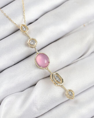 Pirinç Zincir Pembe Gold Renk Zirkon Taşlı Y Kolye