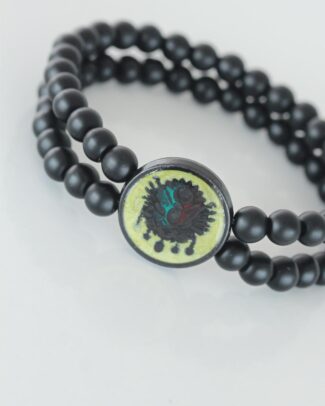 Sarı Renkli Metal Üzerine Osmanlı Arma Figürlü Siyah Renk Çift Sıra Doğal Taş Erkek Bileklik