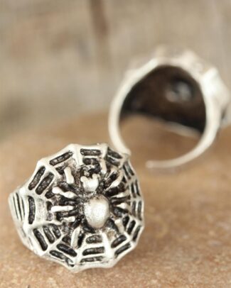 Eskitme Gümüş Renk Örümcek Figürlü Erkek Ayarlamalı Yüzük