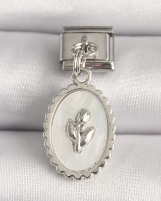 316L Çelik Gümüş Renk Çiçek İşlemeli Beyaz Portre Model Nomination Charm