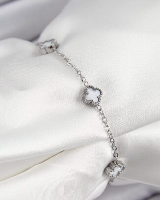 316L Çelik Beyaz Sedef Yonca Model Gümüş Renk Kadın Bileklik