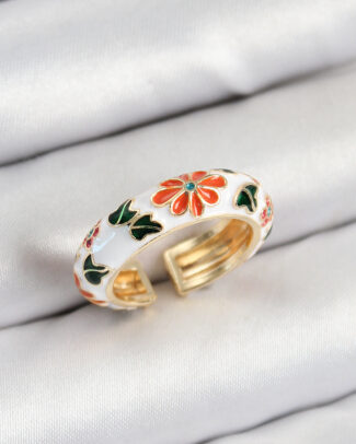 Pirinç Beyaz Mineli Çiçek Motifli Gold Renk Ayarlanabilir Kadın Yüzük