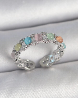 Pirinç Gümüş Renk Renkli Mineli Ayarlanabilir Kadın Yüzük