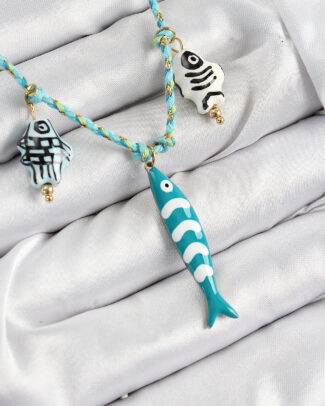 Seramik Motifli Balık Figürlü Model Mavi İp Kadın Kolye