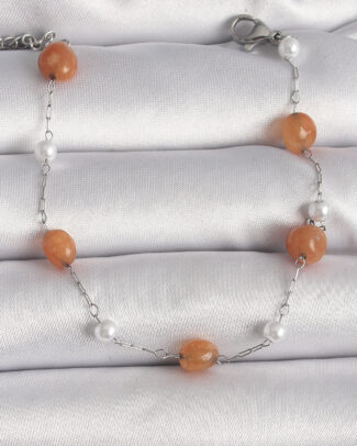 316L Çelik Gümüş Renk Turuncu Doğaltaş Model İnci Detay Kadın Bileklik