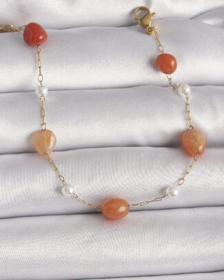 316L Çelik Gold Renk Zincir Turuncu Doğaltaş Model İnci Detay Kadın Bileklik