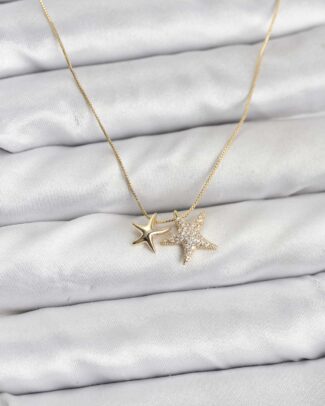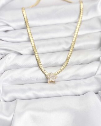 Gold Renk Pirinç Yıldız Zirkon Taşlı Kadın Kolye