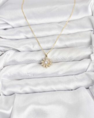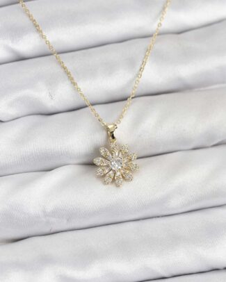 Pirinç Gold Renk Çiçek Model Kadın Kolye