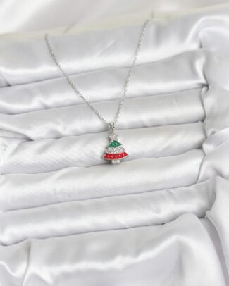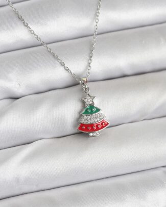 316L Çelik Zincir Gümüş Ren Çam Ağacı Model Zirkon Taşlı Yılbaşı Temalı Kadın Kolye