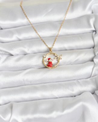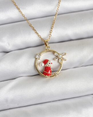 316L Çelik Zincir Gold Zirkon Taşlı Yılbaşı Tema Kadın Kolye