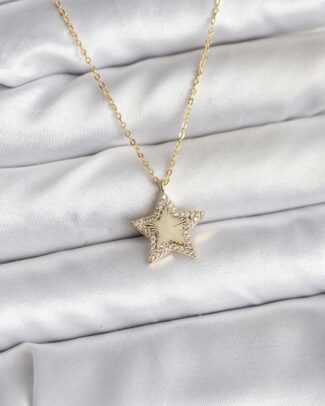 Pirinç Gold Renk Zincirli Yıldızlı Model Kadın Kolye