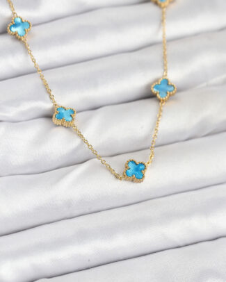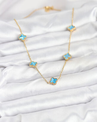 316L Çelik Zincir Gold Renk Buz Mavisi Baby Boy Yonca Kadın Kolye