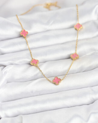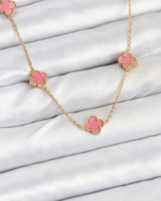 316L Çelik Zincir Gold Renk Pembe Baby Boy Yonca Kadın Kolye