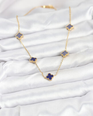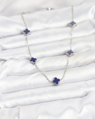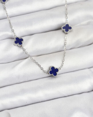 316L Çelik Zincir Gümüş Renk Lacivert Baby Boy Yonca Kadın Kolye