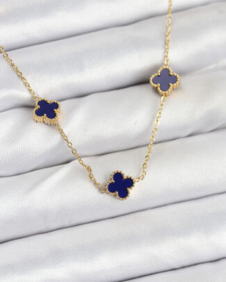316L Çelik Zincir Gold Renk Lacivert Baby Boy Yonca Kadın Kolye