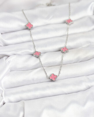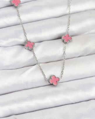 316L Çelik Zincir Gümüş Renk Pembe Baby Boy Yonca Kadın Kolye