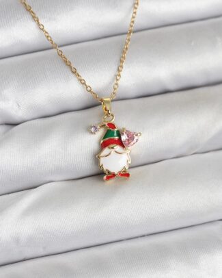 316L Çelik Zincir Gold Renk Kardan Adam Figürlü Yılbaşı Temalı Kadın Kolye
