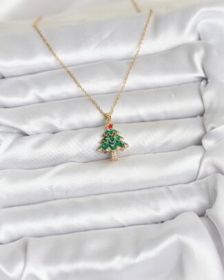 316L Çelik Zincir Gold Ren Çam Ağacı Model Zirkon Taşlı Yılbaşı Temalı Kadın Kolye