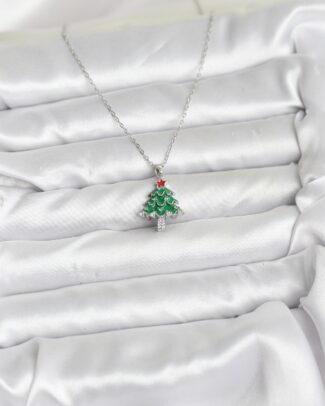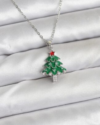 316L Çelik Zincir Gümüş Renk Çam Ağacı Model Yılbaşı Temalı Kadın Kolye